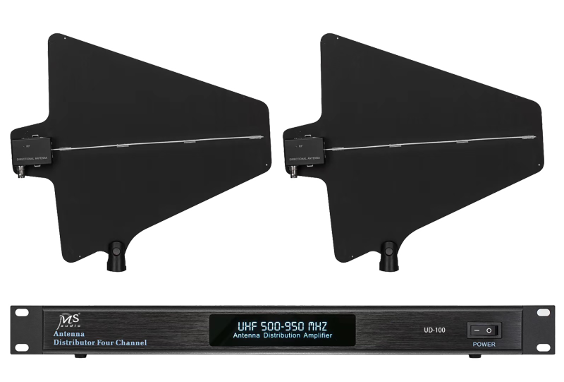 ▲提供使用2~4台UHF无线系列或其他系列各种自动选讯接收机的多频道系统,共用一对天线,